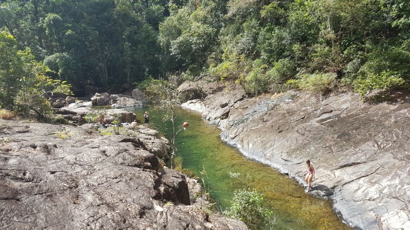 There’s a large plunge pool at the foot of the falls where you can swim and smaller pools a little further downstream. In addition, there are easily accessible rocks and cliffs where you can jump into the pool below.