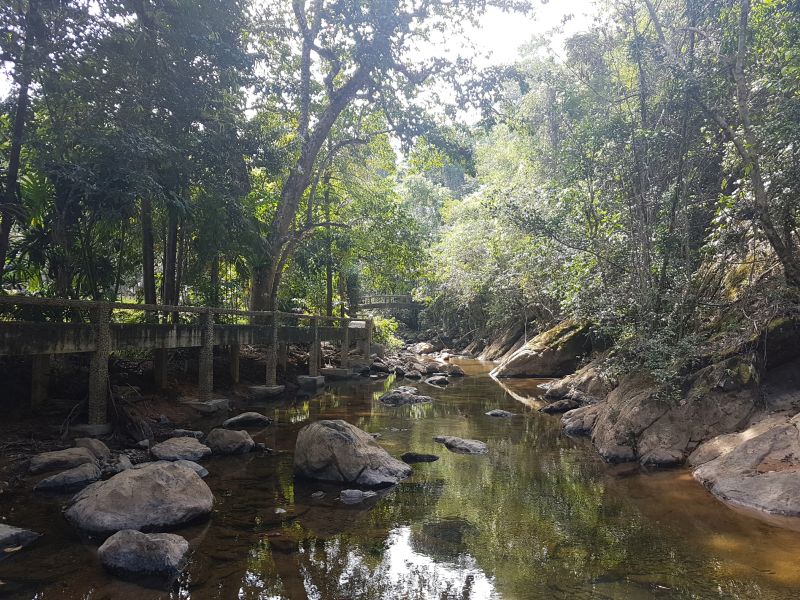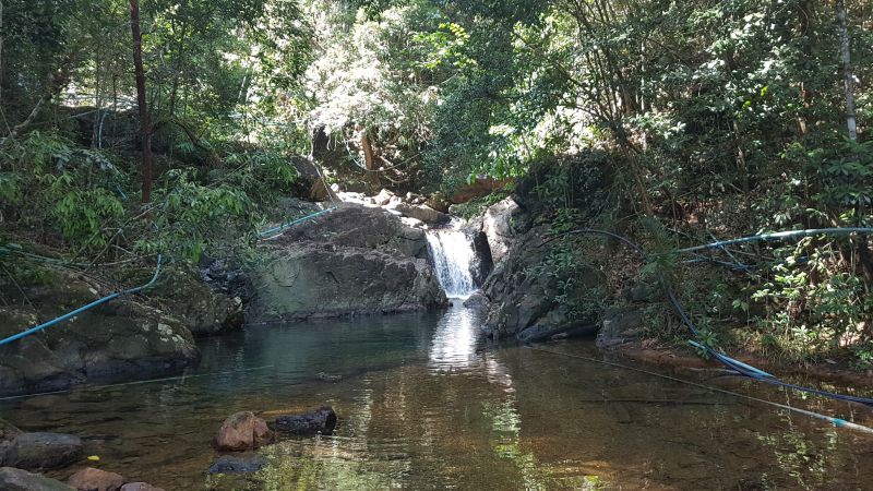 The furthest I’ve walked up the river bed at Klong Chao Lueam waterfall is about an hour from the start and, according to GPS, ended up at a point not too far from another river that leads down to the east coast. So there’s an adventure for someone to try. :-)