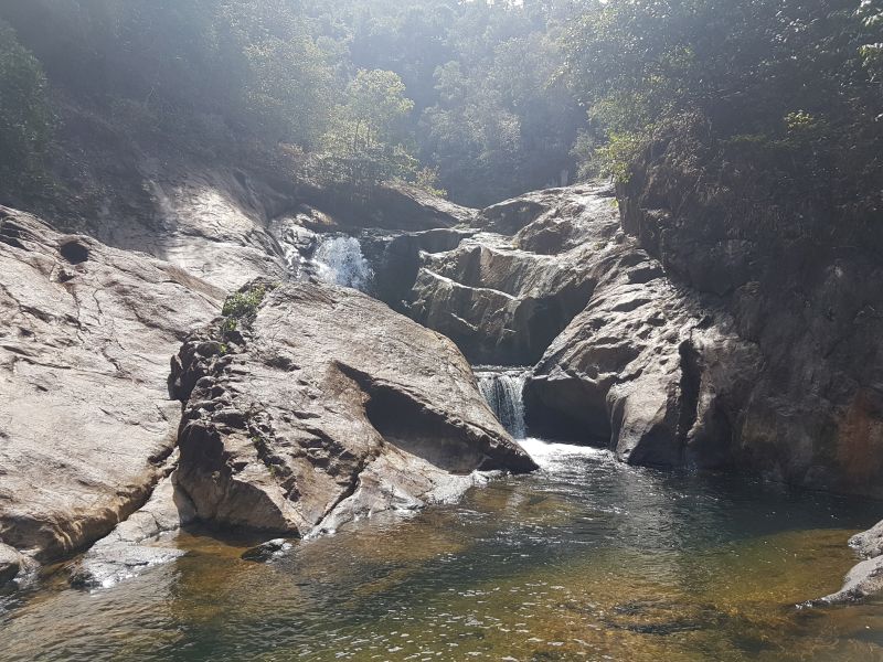 You’ll join the river at some rocks and a large pool where you can swim. The main waterfall is to the right. walk up the sloping rocks, which aren’t slippery, and you’ll get to the higher pool where you can also swim and a third pool at the foot of the waterfall.