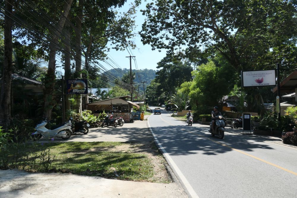 Following the side street in the middle of the village will bring you down to Green Cottages, owned by a Thai singer/actress and with fan & AC and a small pool, big enough to cool off in but you won’t be doing laps.
